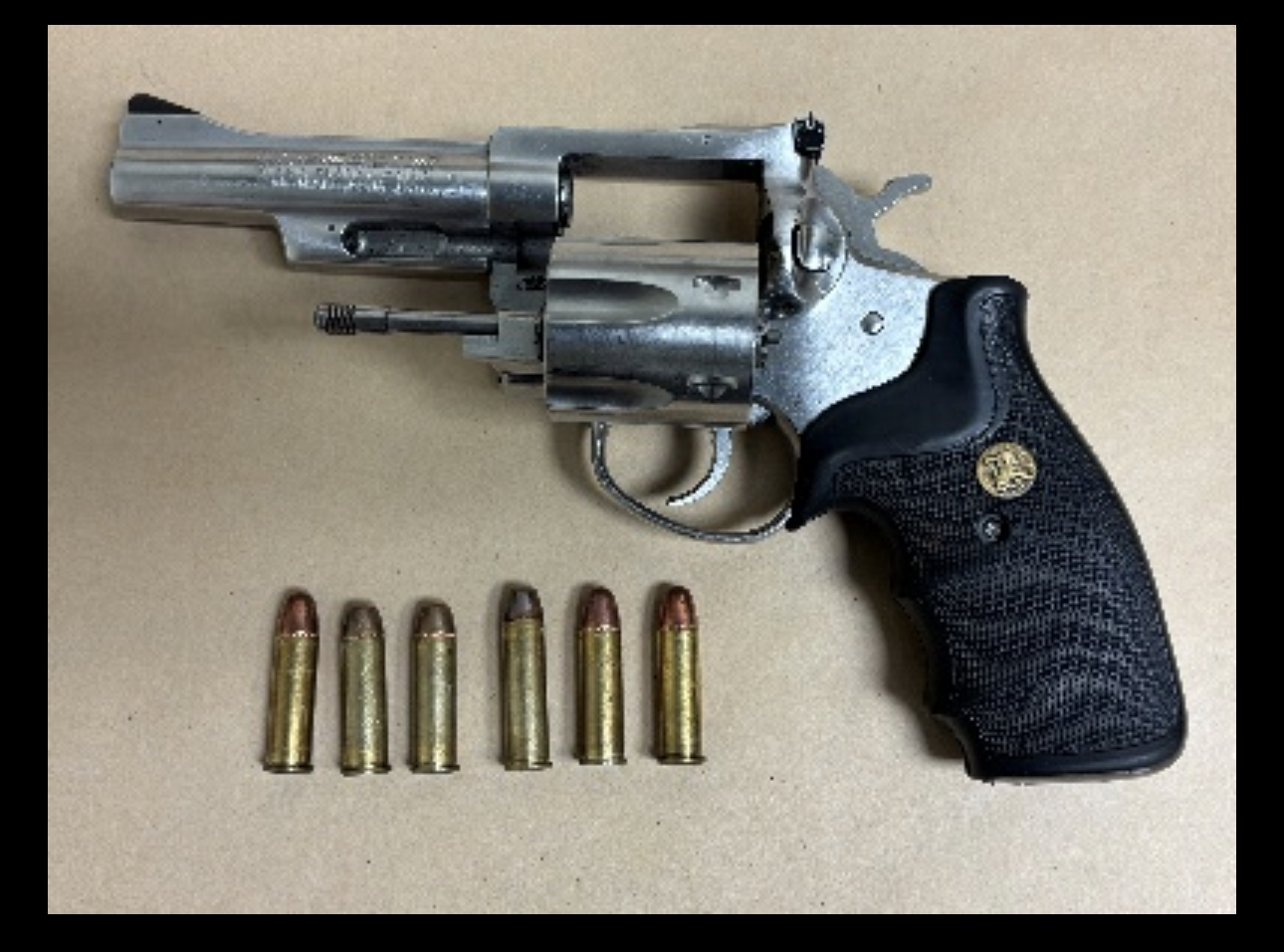 Durante la investigación, un menor de 16 años consintió que se registrara su mochila, donde los agentes encontraron varios cuchillos de hoja fija. Posteriormente, los agentes registraron al menor por causa probable y localizaron un revólver Magnum .357 cargado en el bolsillo de su pantalón. Se confirmó que el arma había sido reportada como robada en Arizona.
