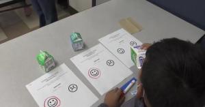 Los estudiantes se sentaron socialmente distanciados e indicaron si les gustaba o no cada leche en una hoja con una cara sonriente o triste. Hay tres empresas diferentes que estamos considerando para una licitación, por lo que es muy importante para nosotros asegurarnos de que lo que sea que tengamos para los niños, los niños lo aprueben, para que hoy prueben un poco de leche», dijo Carlos Murta con Santa.