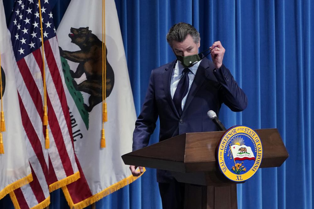 Newsom ha estado bajo presión para relajar las restricciones de coronavirus a medida que disminuye el número de nuevos casos. Es probable que se enfrente a una elección revocatoria a finales de este año, un esfuerzo impulsado principalmente por la ira por su manejo de la pandemia.
