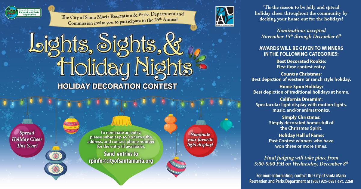 El Departamento de Recreación y Parques de la Ciudad de Santa María y la Comisión de Recreación y Parques invitan a los miembros de la comunidad a decorar sus hogares con el espíritu de la temporada durante la