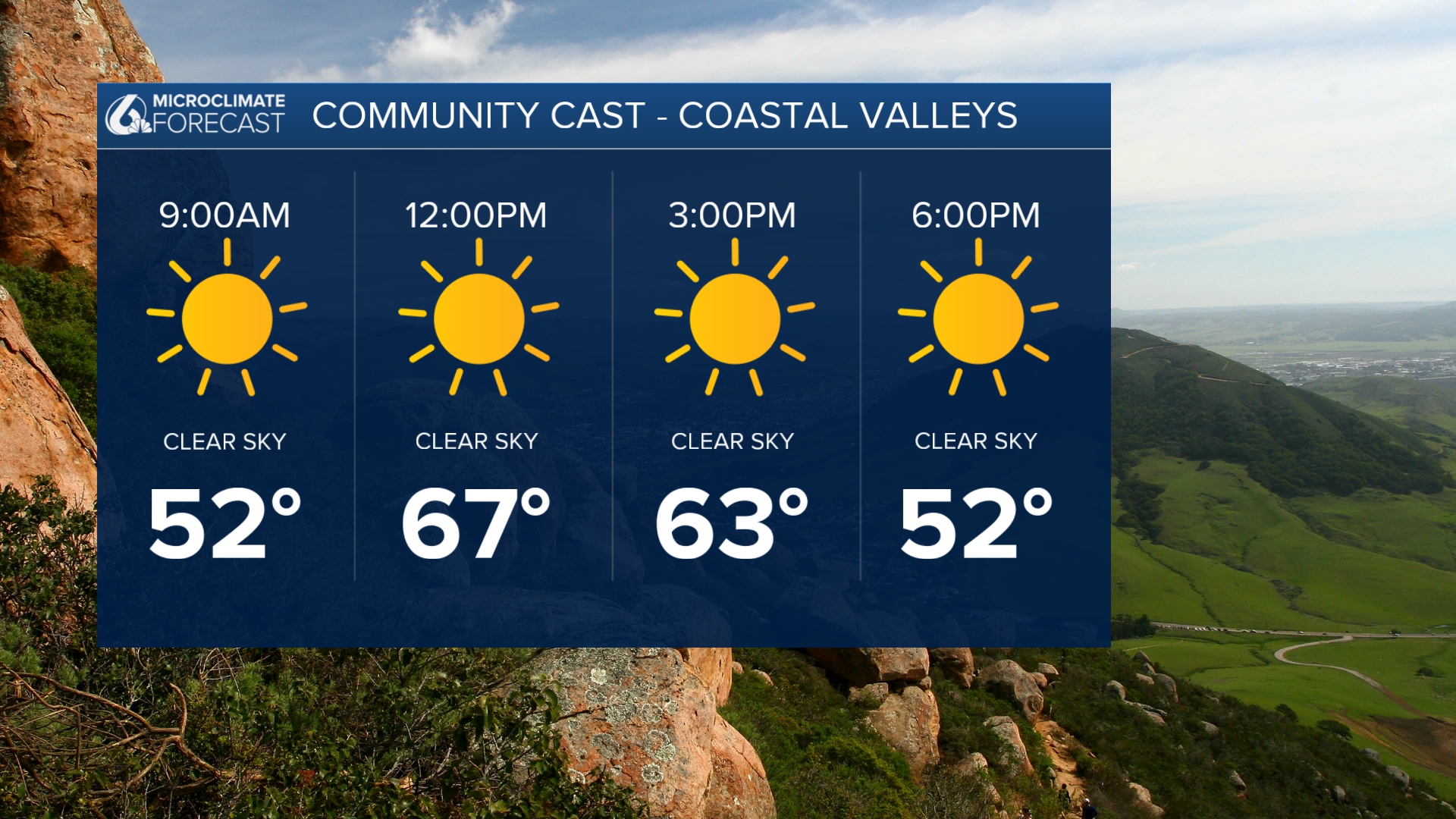 El viernes, la Costa Central verá muchos máximos a mediados de los 60 con algunos mínimos dispersos de 70 con más sol que el jueves.