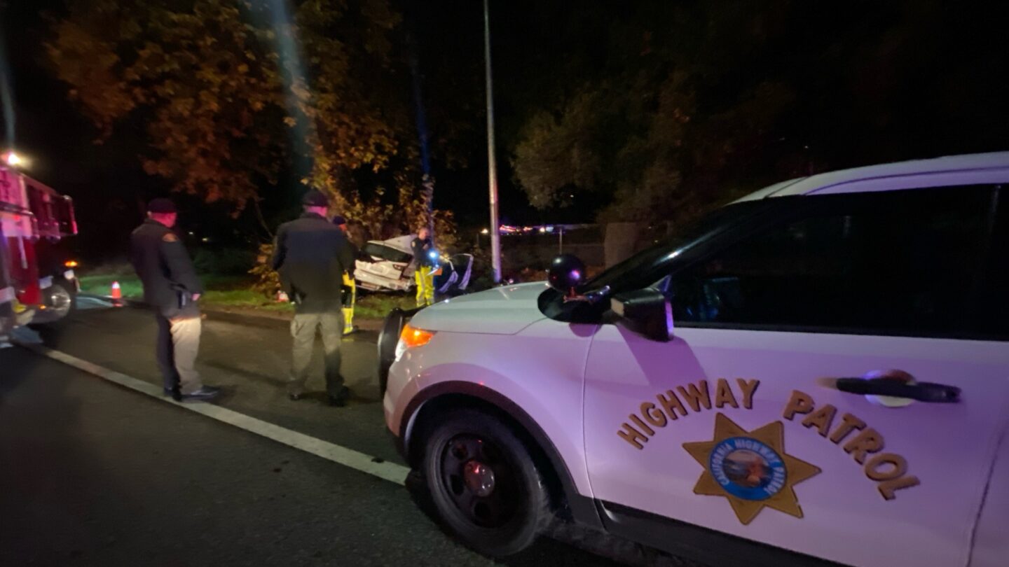 Según las autoridades, el choque violento tuvo lugar cuando un sedán blanco golpeó la mediana central y luego viró a través de la autopista y se estrelló contra un árbol en el lado derecho de la autopista.
