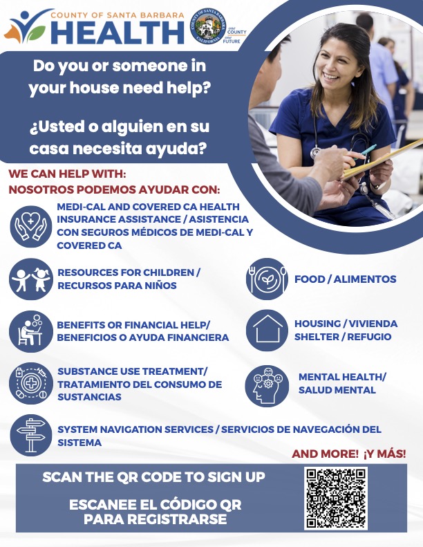 Además, County Health lanzará una nueva iniciativa llamada «The Care Hub», un portal para identificar a los clientes, evaluar su necesidad de servicios y garantizar que se realicen las recomendaciones adecuadas para esos servicios. El Care Hub se centrará en conectar a los residentes del condado de Santa Bárbara con la atención y los recursos que necesitan. Esto incluye asistencia con seguro médico, recursos para niños, finanzas, tratamiento de uso de sustancias, alimentos, vivienda, salud mental y navegación del sistema.