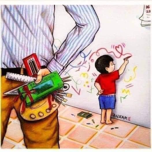 Al regresar el padre, encontró a Omar rayando la pared. Al observar esto, su padre decidió no regañarlo, al contrario, decidió explicarle desde el amor que amaba sus dibujos y le dijo que le regalaría un cuaderno especial para dibujar en donde él podría dibujar todo lo que quisiera.