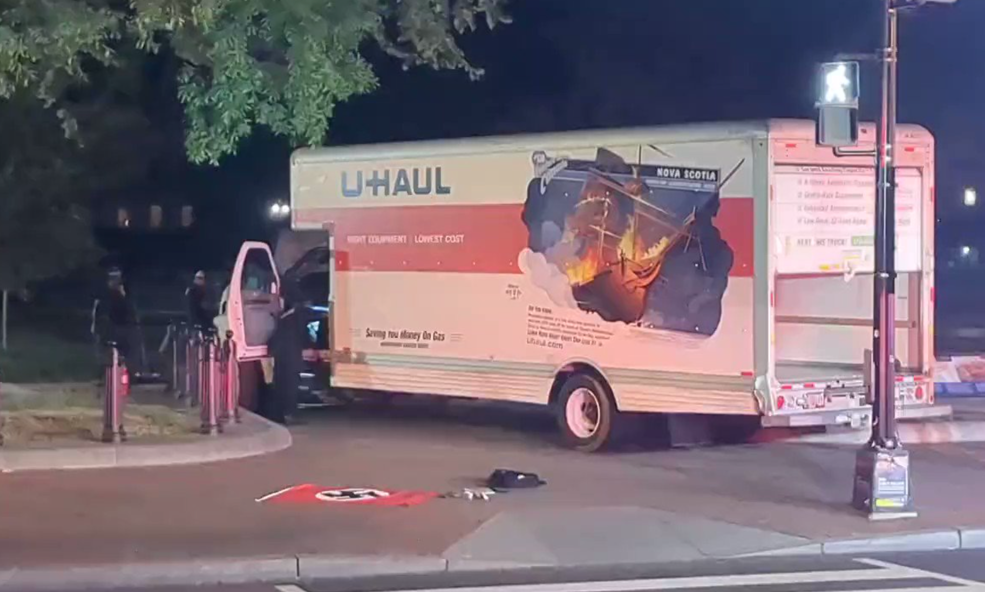 Un conductor fue detenido tras embestir con un camión de alquiler de la empresa U-Haul las barreras de seguridad de la Casa Blanca el lunes por la noche. En el vehículo se encontró una bandera nazi.