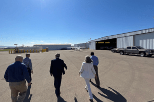 El representante Carbajal y el alcalde Osborne estuvieron acompañados en su recorrido por las paradas de infraestructura por el administrador de la ciudad, Dean Albro, el director de obras públicas, Michael Luther, y el administrador de transporte aéreo, Richard Fernbaugh.