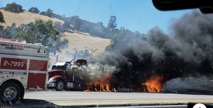 ACTUALIZACIÓN (2:34 p.m.) – CAL FIRE dice que un incendio forestal que comenzó después de que las llamas de un camión semi propagado a la vegetación cercana se mantiene a 1/2 acres