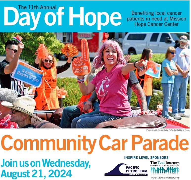 Santa Maria Times, se enorgullece nuevamente de presentar el evento anual Día de la Esperanza el miércoles 21 de agosto de 2024. El undécimo evento comunitario anual beneficia a pacientes locales de cáncer necesitados en Mission Hope Cancer Center en Santa Maria y Arroyo Grande. Los equipos de Day of Hope se alinearán en las calles para vender la edición especial del periódico Day of Hope del Santa Maria Times desde las 7 a. m. hasta las 12 p. m. en Santa Maria, Orcutt, Guadalupe, Nipomo y el área de Five Cities.