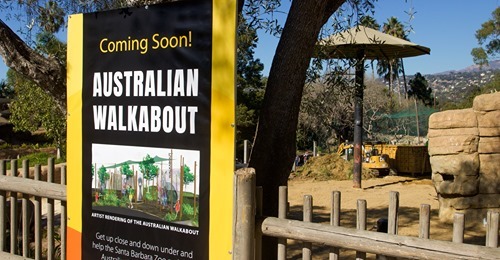 SANTA BARBARA, Calif. – El zoológico de Santa Bárbara comenzó la construcción de su exhibición australiana Walkabout. La exhibición más reciente de 15,000 pies cuadrados llevará a los visitantes «Down Under». Los huéspedes podrán caminar entre los canguros, canguros, emúes y aves nativas de Australia.