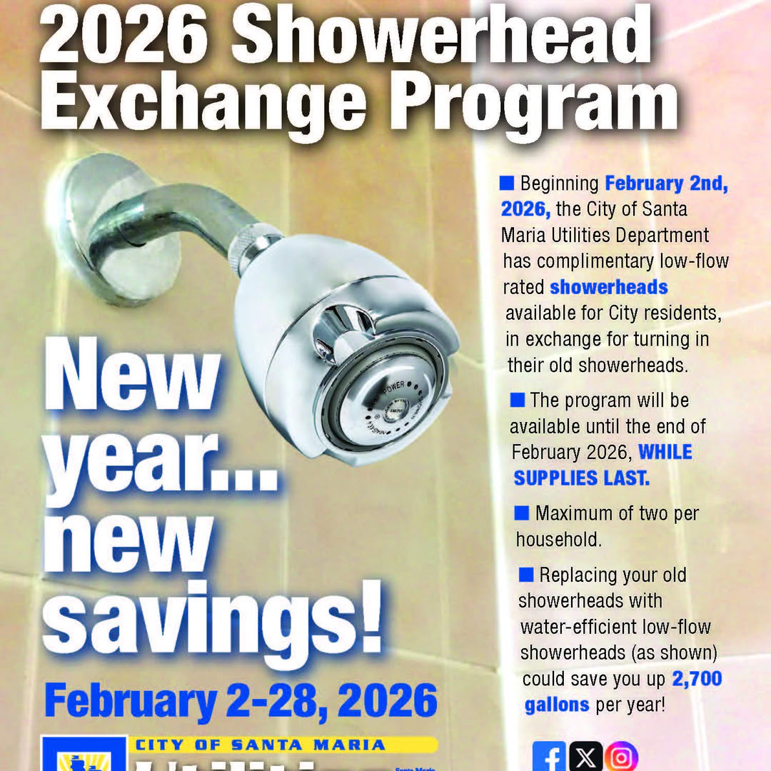 El departamento de Utilidades de la Ciudad de Santa Maria está ofreciendo regaderas gratuitas para los clientes de agua de Santa María durante todo el mes de febrero. Los clientes que califiquen pueden recibir hasta dos regaderas de bajo flujo certificadas por WaterSense, a cambio de sus regaderas antiguas, además de un kit de conservación de agua por hogar (hasta agotar existencias).