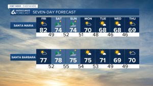 Los vientos también aumentarán un poco durante el fin de semana, particularmente a lo largo de la costa de Gaviota y en las montañas de Santa Ynez. Esto debería mantenerse por debajo de los criterios de recomendación, pero aún será perceptible.