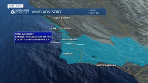 Los vientos y las olas también son una preocupación hoy en día. Hay un aviso de viento vigente para la mayor parte de la costa central, excluyendo el interior del condado de SLO, hasta la madrugada del jueves.
