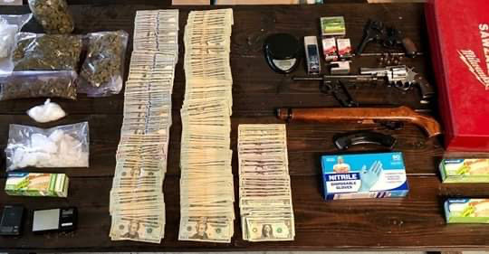 Durante la orden de allanamiento, los detectives dicen que encontraron 3 ½ libras de metanfetamina, seis armas de fuego y alrededor de $ 11,000 en efectivo.