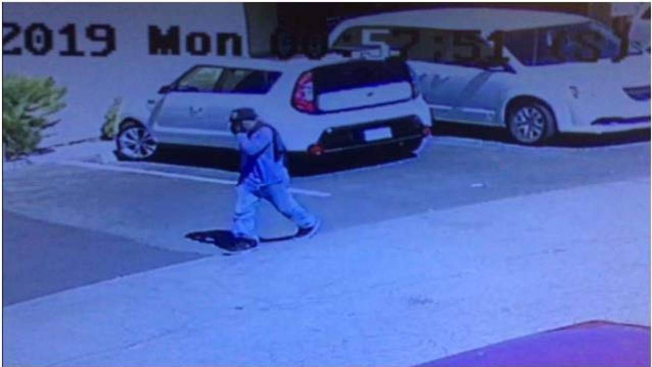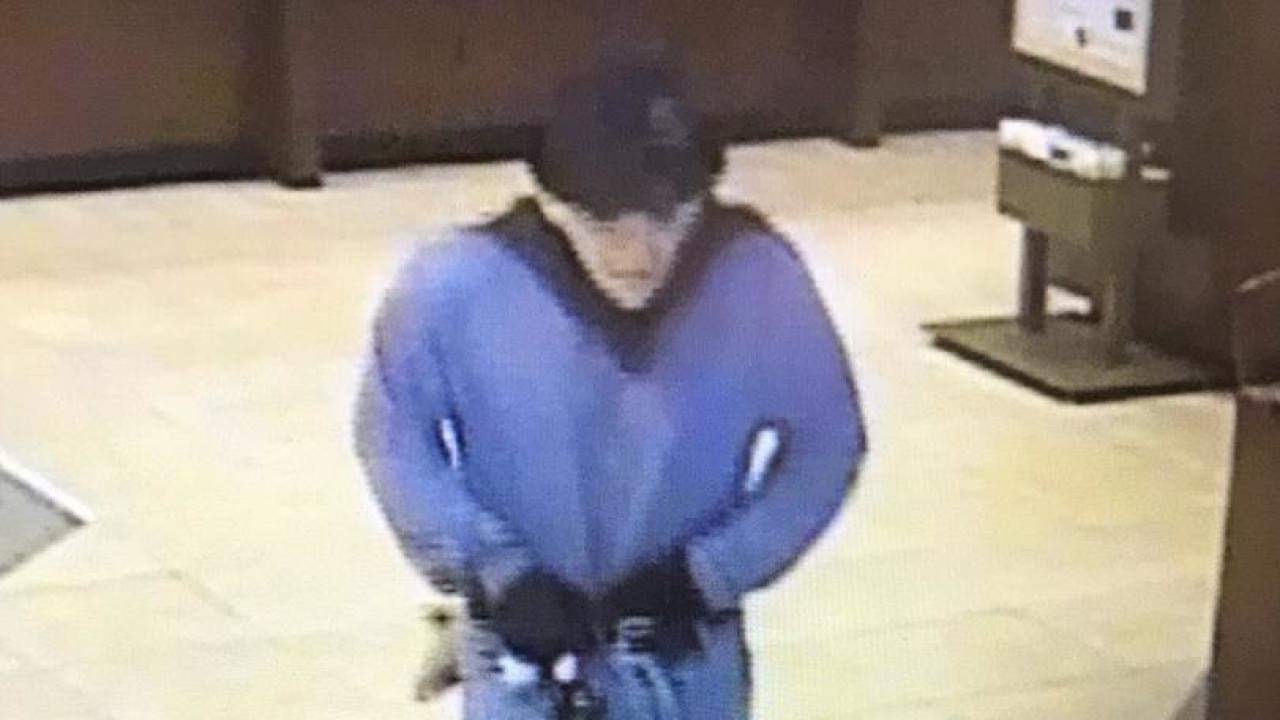 La policía dice que el ladrón llevaba jeans, una camisa azul de manga larga, una bufanda, un sombrero estilo fedora con una calavera en el costado, guantes y una máscara que se parecía a un hombre mayor.
