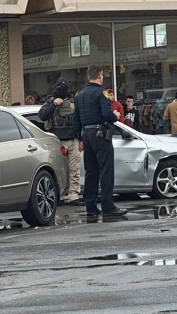 Durante el arresto, los agentes de ICE tuvieron un pequeño accidente automovilístico con el sospechoso en el estacionamiento de Goodwill. Finalmente, los agentes de ICE forzaron la entrada al vehículo y arrestaron a la persona.