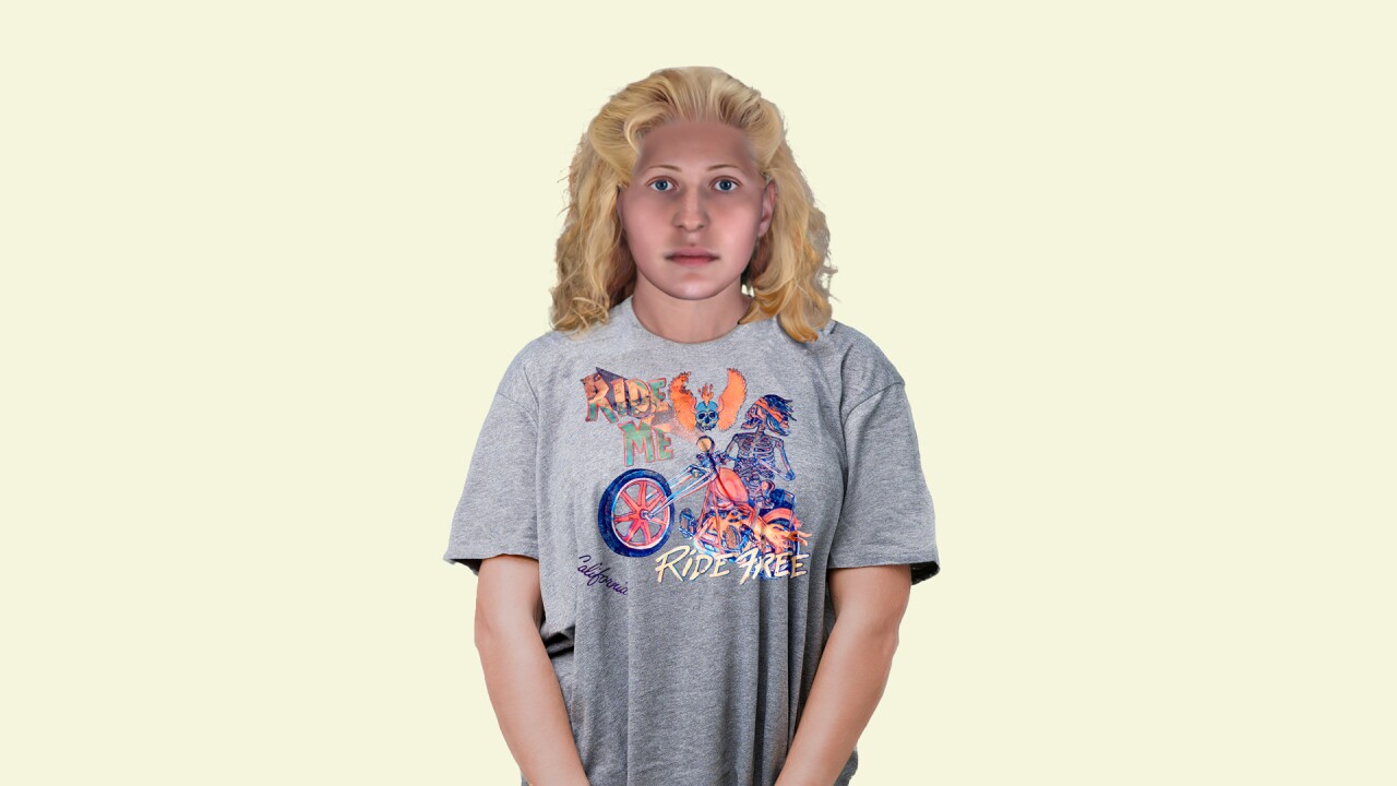 Se la describe como blanca, de tez clara, de entre 25 y 35 años, de 5’7″ de altura y de constitución mediana. Tenía el cabello castaño o teñido de rubio y un tatuaje de dos puntos en el pulgar derecho. En el momento de su muerte, llevaba una camiseta con un esqueleto conduciendo una motocicleta y las palabras «Ride Me, Ride Free, California».