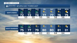 Las temperaturas interiores generalmente descenderán a los 90 durante los próximos días, pero seguirán estando por encima del promedio. Otro evento de calor con máximas diurnas de 100 a 106 comienza el jueves para el interior del condado de San Luis Obispo.