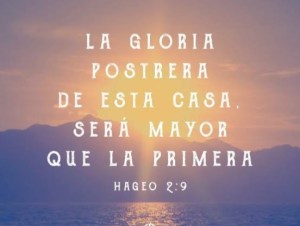 Hageo 2: 8-9 “Mía es la plata, mío es el oro, dice el Señor de los Ejércitos Celestiales. La gloria postrera de esta casa será mayor que la primera, ha dicho el Señor de los Ejércitos Celestiales; y daré paz en este lugar, dice el Señor de los Ejércitos Celestiales”.