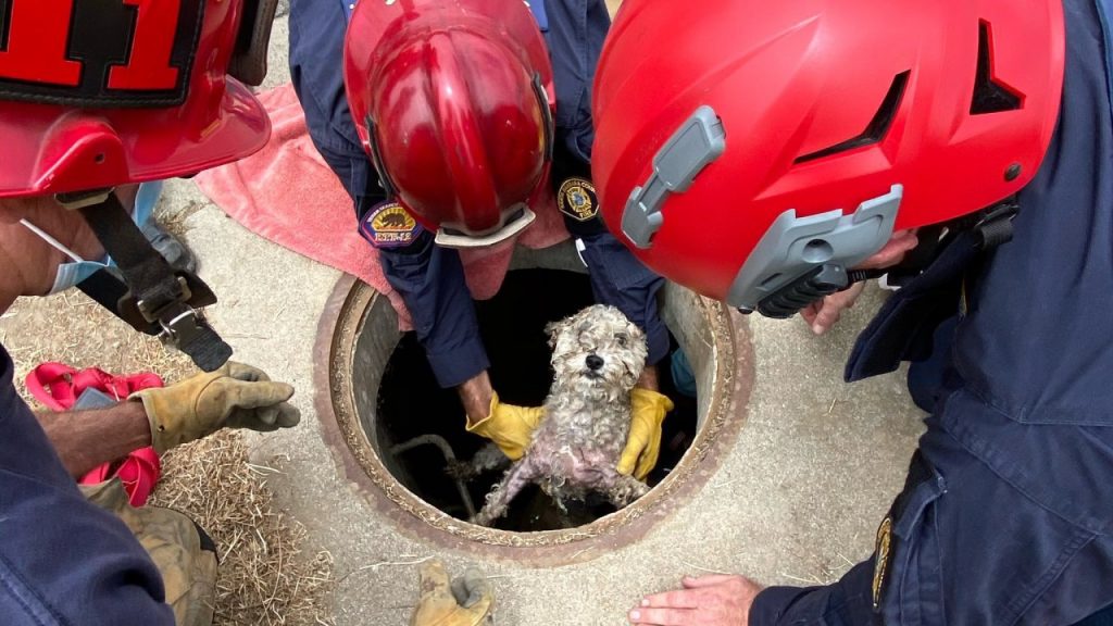 Una vez en la escena, los bomberos pudieron ver al perro dentro del desagüe. Según los informes, usaron una manguera para llevar al perro a un extremo del desagüe donde un bombero estaba esperando para agarrarla y llevarla por una escalera a un lugar seguro.