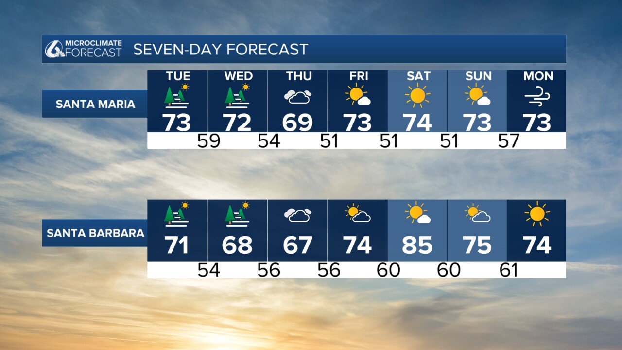Donde la niebla marina provocó una mañana nublada, las temperaturas serán suaves, justo por encima de lo normal para esta época del año. Los interiores, donde no llegó la capa marina, harán calor hoy. Algunos pueden incluso alcanzar los tres dígitos.