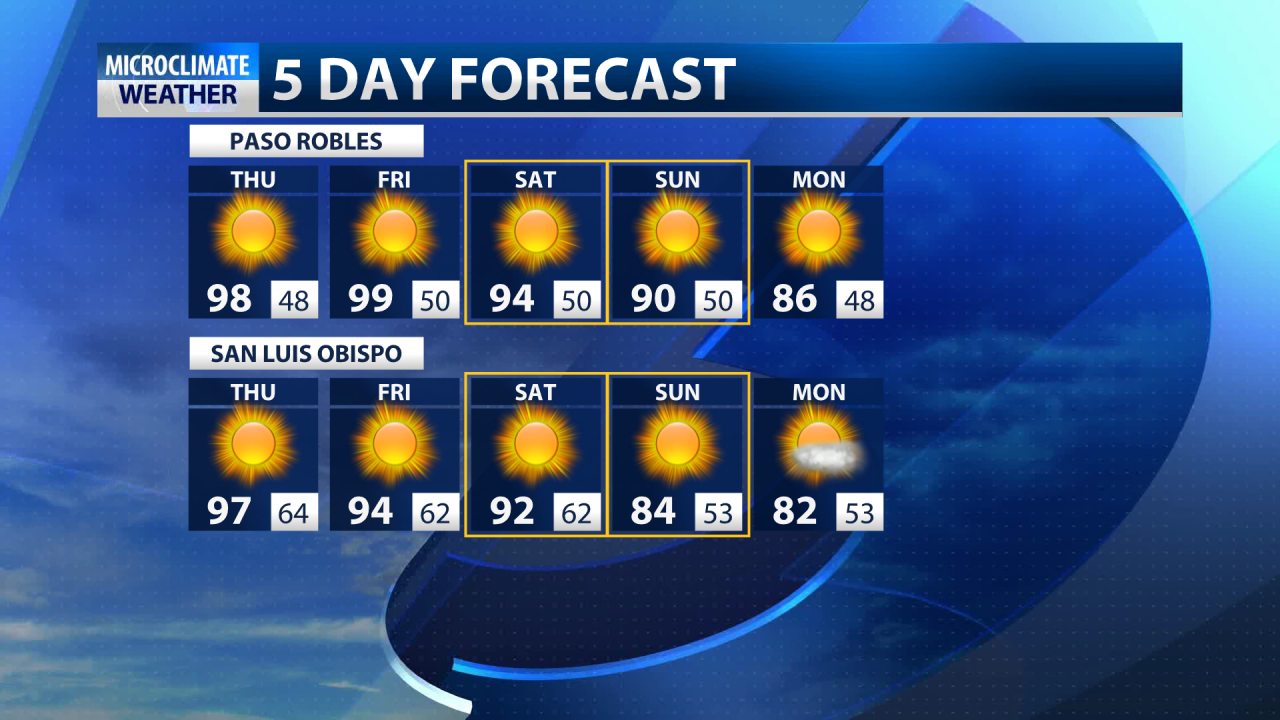Los valles costeros e interiores se mantendrán bastante consistentes con el pronóstico del miércoles y oscilarán entre los años 80 y 90. El aviso de calor permanece en su lugar hasta las 5 p.m. Viernes, por lo que las temperaturas superiores a la media continuarán hasta el comienzo del fin de semana.