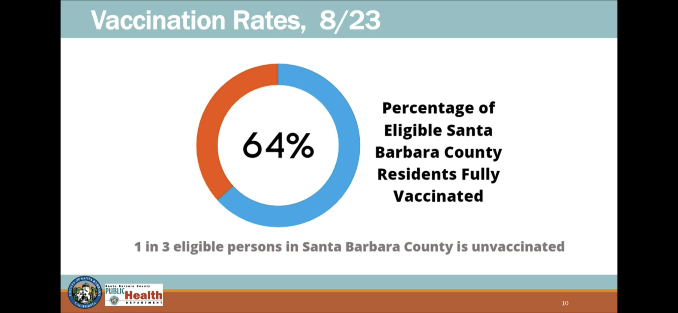 En un informe del martes por la mañana a la Junta de Supervisores, Do-Reynoso dijo que el 64 por ciento de la población ha sido completamente vacunada. Actualmente hay 77 personas hospitalizadas y se han notificado 83 nuevos casos. 139,758 residentes elegibles del condado de Santa Bárbara todavía están disponibles para ser vacunados. Eso es aproximadamente uno de cada tres.