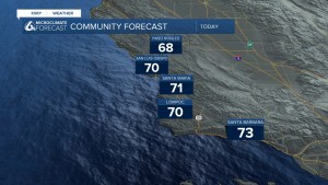 Se espera que el martes sea el día más cálido de la semana con playas en los 70 grados bajos, valles costeros e interiores en los 70 grados medios y altos.