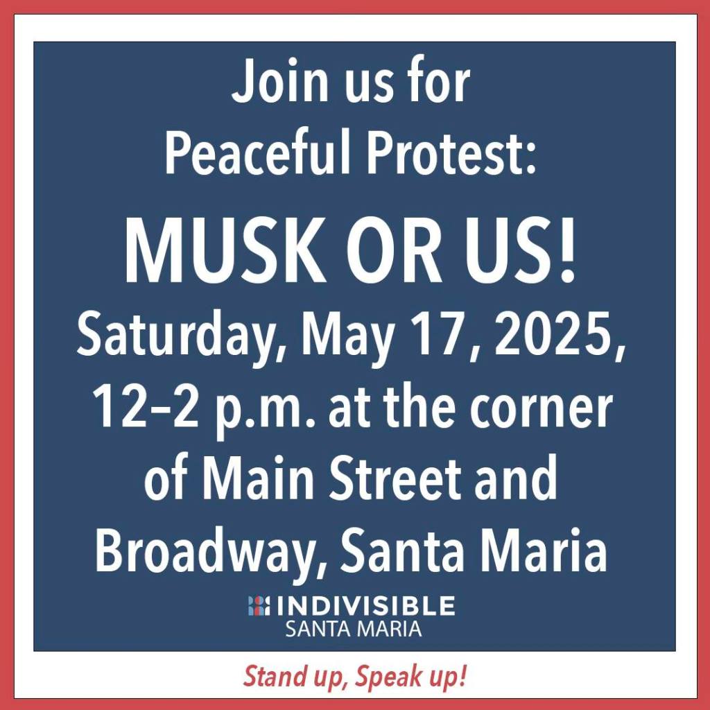 A medida que nos acercamos a la manifestación de mañana de Indivisible Santa María: ¡MUSK O NOSOTROS!, queremos asegurarnos de que todos estén y se mantengan seguros.