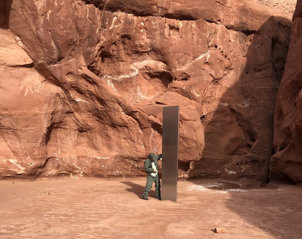 El Departamento de Seguridad Pública de Utah dijo que los biólogos detectaron el monolito el 18 de noviembre, un informe que atrajo la atención internacional. Medía aproximadamente 11 pies (3.4 metros) de alto con lados que parecían estar hechos de acero inoxidable.
