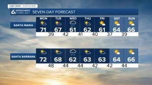 Los valles interiores registraron máximas entre los 60 y los 60 grados. La temperatura máxima para Santa Ynez fue de 68 grados.
