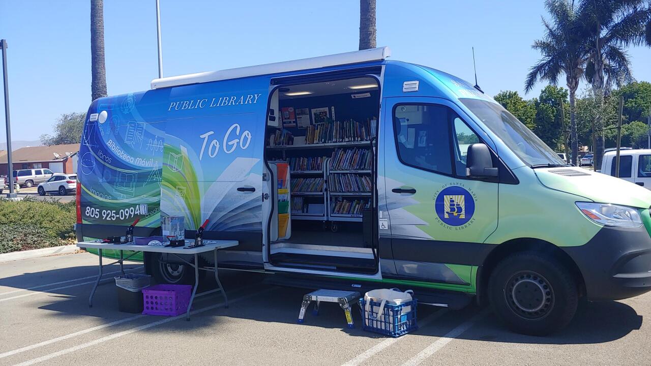 El SMPL to Go Bookmobile de la Biblioteca Pública de la Ciudad de Santa María estará alrededor de la ciudad con paradas emergentes de Bookmobile en sábados seleccionados en varios lugares. En cada parada, los usuarios pueden sacar materiales, reservar y solicitar una tarjeta de la biblioteca.