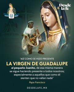 En este sentido, Santa María de Guadalupe, la gran conciliadora, nos recuerda que es de su mano como podemos convertirnos en grandes artesanos de la paz mundial, empezando en nuestras propias familias, y en nuestro propio país, hoy dolido por la violencia y la inseguridad. Ella es fiel, y no nos abandona.