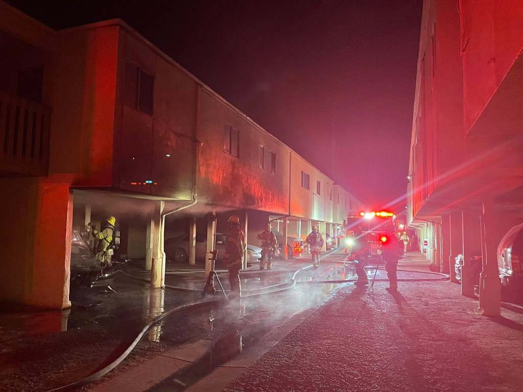 El 22 de Febrero a las 02:41 horas, los agentes respondieron a dos llamadas de incendio provocado en diferentes lugares. El primer incidente ocurrió en los Apartamentos Twin Palms. Los agentes ayudaron a evacuar a los residentes.