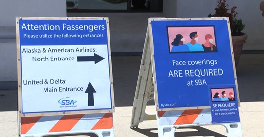 El Aeropuerto de Santa Bárbara (SBA) ahora exige que todos los pasajeros, el personal y los invitados se cubran la cara cuando viajan o llegan al aeropuerto.