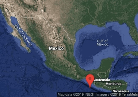 El foco sísmico estuvo localizado a 26 kilómetros de profundidad y el epicentro se ubicó a 115,7 kilómetros al noreste de Puerto Madero y a 134,2 kilómetros al noreste de Ciudad Hidalgo.