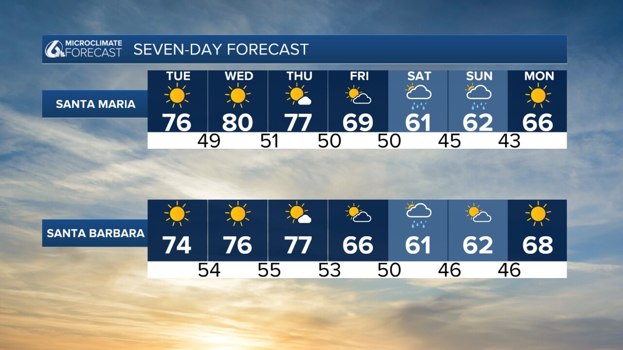 Antes de entrar en el pronóstico del fin de semana (que parece húmedo y ventoso), centrémonos en las temperaturas cálidas que estamos a punto de experimentar esta semana en los condados de San Luis Obispo y Santa Bárbara.