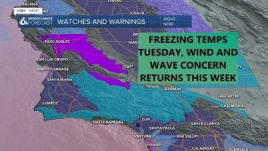 Los valles costeros, incluidos el valle de Lompoc, el valle de Santa María y el valle de Santa Ynez, junto con San Luis Obispo y el valle de Edna, tienen una advertencia de congelación esta mañana. Si bien las temperaturas pueden no ser tan frías como las de los valles interiores, serán lo suficientemente frías como para dañar potencialmente las plantas. Las personas en esta área de advertencia también deben considerar precauciones contra las condiciones frías nocturnas.