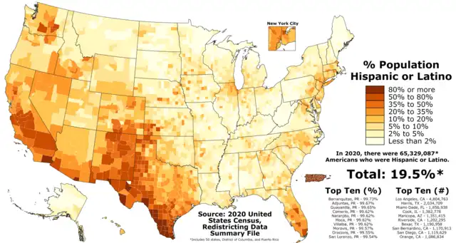 Actualmente, la población hispana representa aproximadamente 1 de cada 5 estadounidenses, o el 19.1% de todos los habitantes del país.